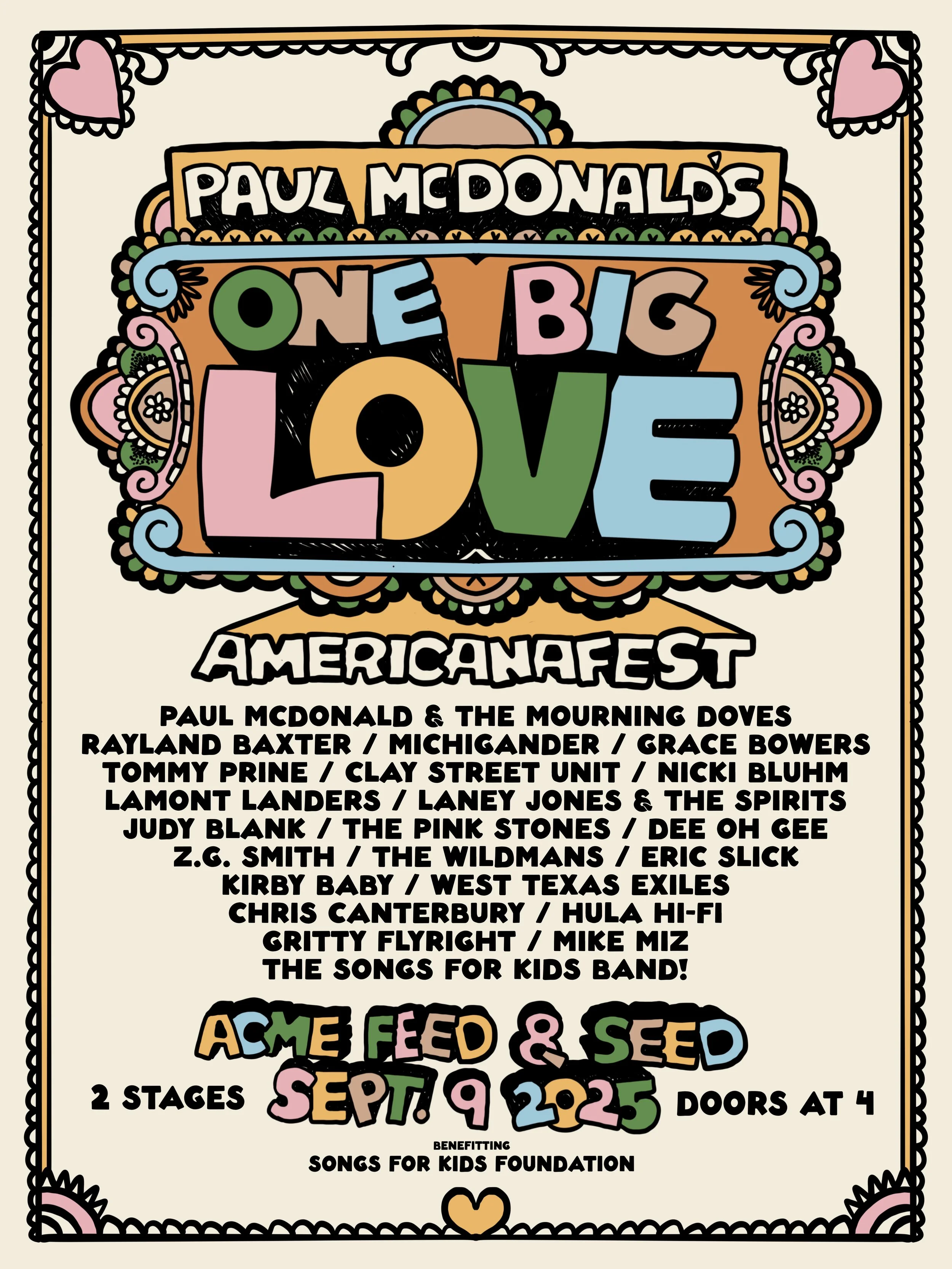 MERCH Categories: All T-Shirts Music Posters Accessories Vintage One Big Love Holiday Sale All | T-Shirts | Music | Posters | Accessories | Vintage | One Big Love | Holiday | Sale | One Big Love 2025” Gold Foil Poster (Taylor Rushing) from $40.00 “Mourning Doves + Mountain Dew” Corduroy & Mesh Hat $40.00 CAMP Collection ONE BIG LOVE 2025 Logo Tee $50.00 "So Long to the Dark Side" GOLD NUGGET VINYL from $35.00 "So Long To The Dark Side" Physical CD from $10.00 "So Long To The Dark Side" ALBUM RELEASE PARTY Limited Edition Hologram Poster (Taylor Rushing) $50.00 "Live In Concert 2025" Tour Poster (Tiffany Chin) from $40.00 "So Long To The Dark Side" 18x24" Poster (BLUMOO) $40.00 Sold out "So Long To The Dark Side" Double Sided V-Tie Dye (Sam Daly) $60.00 Sold out "Live In Concert 2024" Tour Poster (Fez Moreno) Sale Price: $30.00 Original Price: $50.00 Sale "Mourning Doves" Vintage 3 Stripe SnapBack Trucker Hat Puff Print $35.00 Paul Handwritten Song Lyrics $100.00 “Drip” Coffee Mug (Taylor Rushing) $15.00 Sold out "Triple Dove" x CAMP Collection Unisex Shirt (Nick Potts) $60.00 Sold out Paul McDonald & The Mourning Doves Antique Brass Belt Buckle $30.00 "Kick Drum" Pullover Hoodie $60.00 "70's Stamp" x CAMP Collection Unisex Tee (Taylor Rushing) $50.00 "Wings" Mourning Doves Tie-Dye Tee (Nick Potts) $40.00 "Desert Logo" Camo Tee (Matt Cliff) $35.00 Sold out "Mourning Doves" Baseball Tee (Fez Moreno) $40.00 "Bar Pony" Tee $35.00 "Space Cowboy" Tee $30.00 "Live at the Underdog 2023" Limited Run Tee (Matt Adams) $35.00 "Woodstock" Mourning Doves Tie-Dye (Matt Adams) $40.00 "Up in Smoke" Tee (Jason Martin) $30.00 Sold out CAMP Collection Women's "ONE BIG LOVE" Logo Tank (Taylor Rushing) $30.00 “Who Cares” Vintage Jersey $40.00 Sold out "Head Shop" Vintage Ringer Tee (Taylor Rushing) $35.00 "Portrait" Vintage Ringer Tee (Garrett Morlan) $35.00 "Party Armadillo" Glow In The Dark Tee (Jordan Noel) $30.00 Sold out "Season's Greetings" Limited Run Ringer Tee (Taylor Rushing) $35.00 CAMP Collection "Psychedelic" Tee (Nick Potts) $50.00 "Mourning Doves Logo" Glitter Enamel Pin (Fez Moreno) $15.00 "Cartoon Paul" Enamel Pin (Robert Woodford) $15.00 "Kick Drum" Enamel Pin (Taylor Rushing) $15.00 "Desert Logo" Glitter Enamel Pin (Matt Cliff) $15.00 "Bar Pony" Koozie $5.00 Sold out "Western Rose" Bandana $10.00 "Good Time Guitar Tabs" Matchbook (Luke Pelletier) $5.00 "Good Time" GLASS ASHTRAY (Luke Pelletier) from $20.00 "East Nashville" Pom Beanie $25.00 "Paul McDonald" POM Beanie $25.00 "East Nashville" Pom Beanie $25.00 Sold out "Mourning Doves" Lighter $5.00 Sold out "Mourning Doves" Patch (Fez Moreno) $5.00 "Mourning Doves" Patch (Taylor Rushing) $5.00 Holiday Limited Edition "Mourning Doves" Sticker $3.00 “Mourning Doves” Sticker (Fez Moreno) $3.00 "Mourning Doves" Sticker (TWK CHIN) $3.00 "OBL Records" Gold Foil Sticker $3.00 "BIG LOVE" Glitter Sticker (Matt Adams) $3.00 "Desert Logo" Pixie Dust Sticker $3.00 "Head Shop" Sticker (Taylor Rushing) $3.00 "One Big Love" Hologram Sticker (Taylor Rushing) $3.00 “One Big Love 2025” Glitter Sticker $3.00 "Kick Drum Logo" Glow in the Dark Sticker $3.00 Sold out "Spill The Tea" Sticker (Taylor Rushing) $3.00 Vintage 8x10" Autographed Promo Photo from $10.00 Paul McDonald & The Mother Hips Co-Bill Poster $20.00 "2023 Live From Star Rover Sound" One Big Love Poster (Fez Moreno) $20.00 One Big Love 2023 Festival Poster (Fandy Darisman) $20.00 "2023 Live From the Coliseum" One Big Love Poster (Matt Adams) $20.00 "2023 Summer Shows" Poster (Grace Reyer) $20.00 "Live at the Flora-Bama" Poster $20.00 2022 One Big Love Poster (Taylor Rushing) Sale Price: $30.00 Original Price: $40.00 Sale "2022 UK TOUR" Poster (Taylor Rushing) $20.00 "2020 Stay Home Tour" Poster (Keith Brogdon) Sale Price: $20.00 Original Price: $40.00 Sale "2019 Modern Hearts On Tour" Poster $40.00 Sold out "2018 Modern Hearts Tour" Poster Sale Price: $20.00 Original Price: $40.00 Sold out "Season's Greetings" Holiday Card (Taylor Rushing) $5.00 “Modern Hearts” Red Transparent Vinyl from $30.00 "Modern Hearts" Physical CD from $12.00 Grand Magnolias Vinyl Record from $30.00 Grand Magnolias Physical CD from $12.00 Vintage "Grand Magnolias" Sticker $3.00 Vintage "Grand Magnolias" Button/Pin $3.00