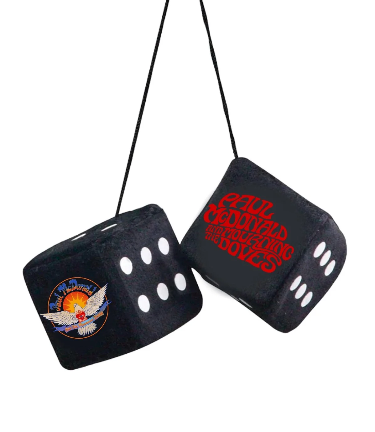 MERCH › "Mourning Doves" Fuzzy Dice Image 1 of 1 "Mourning Doves" Fuzzy Dice $30.00 sold out 7.5cm x 7.5cm fuzzy dice. Sold Out Added! 7.5cm x 7.5cm fuzzy dice.